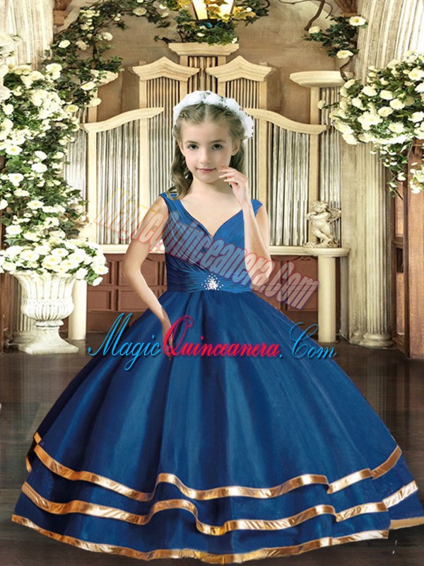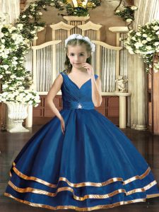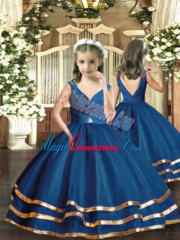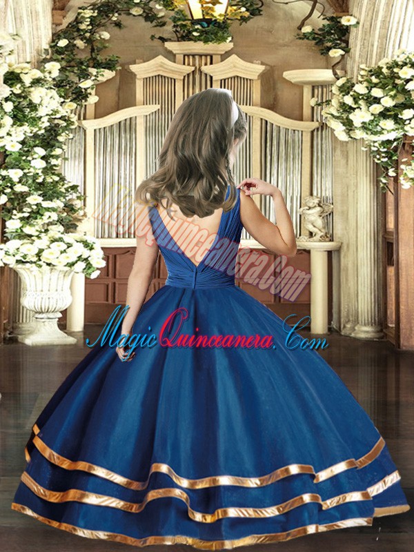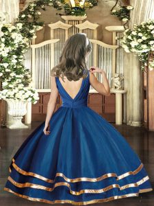 Navy Blue Sleeveless Organza Backless Child Pageant Dress for Party and Sweet 16 and Wedding Party