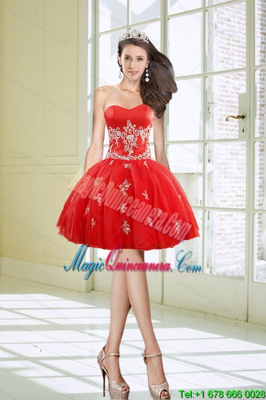 shinning 2022 dresses for dama, New Arrival Ball Gown Sweetheart Appliques Red Dama Dresses for 2015