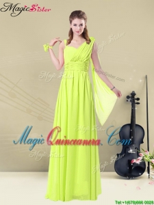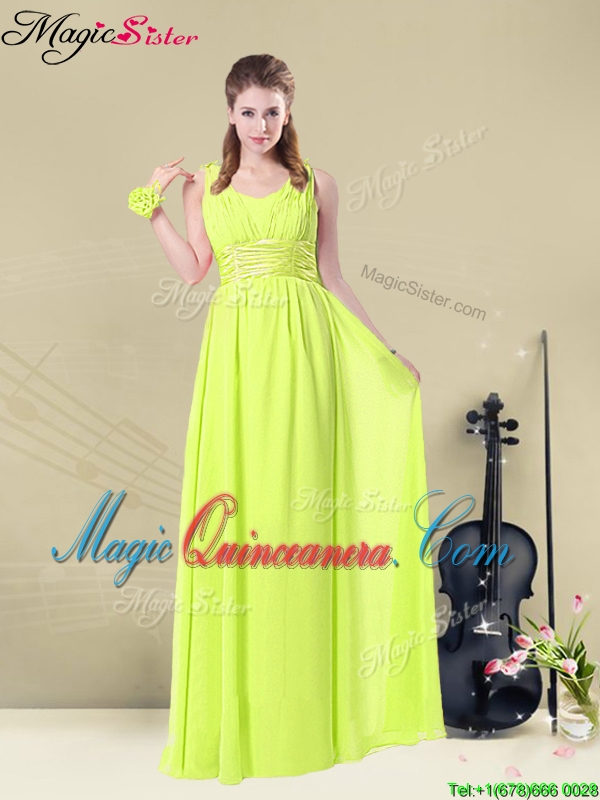 , New Arrival Empire Floor Length Belt Dama Dresses in Yellow Green for 2016 Spring