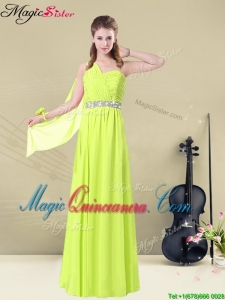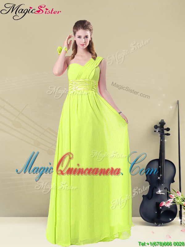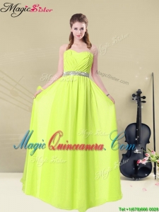 New Arrival Empire Floor Length Belt Dama Dresses in Yellow Green for 2016 Spring