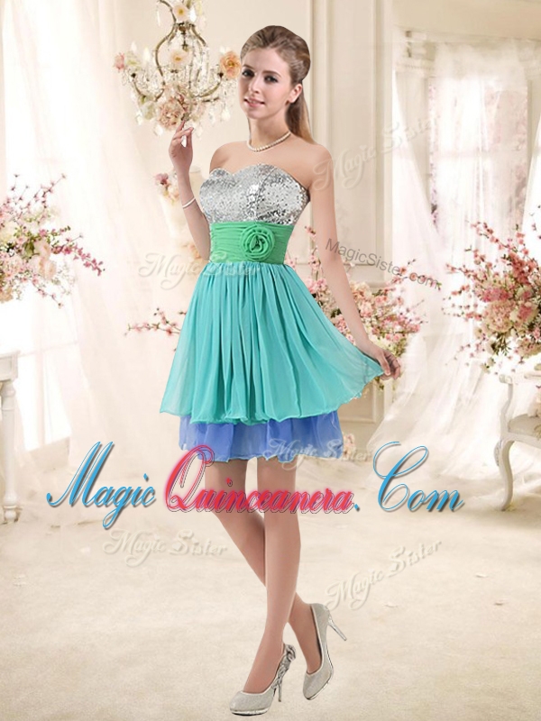 New Arrival Short Multi Color Dama Dresses with Sequins and Hand Made Flowers