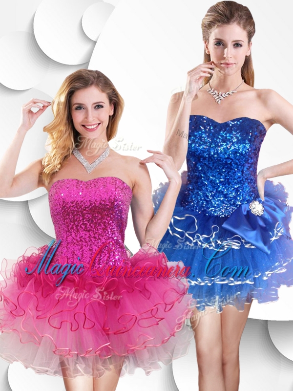 , New Arrival Short Strapless Dama Dress with Sequins and Ruffles