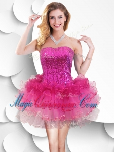 New Arrival Short Strapless Dama Dress with Sequins and Ruffles