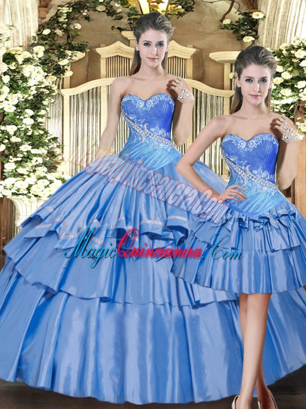 New Arrival Sleeveless Beading and Ruffled Layers Lace Up 15 Quinceanera Dress