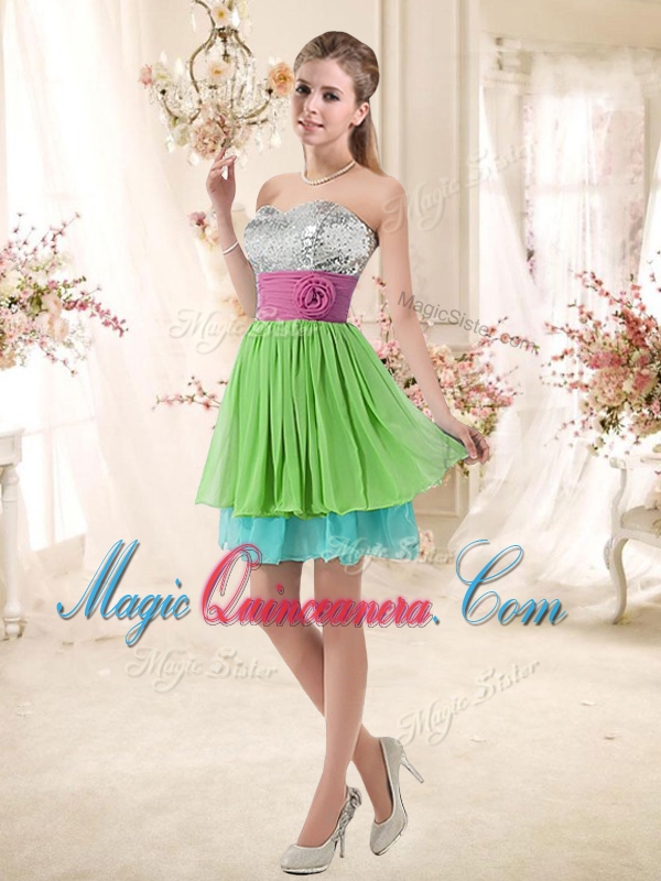 New Arrival Sweetheart Short Dama Dresses with Sequins and Belt