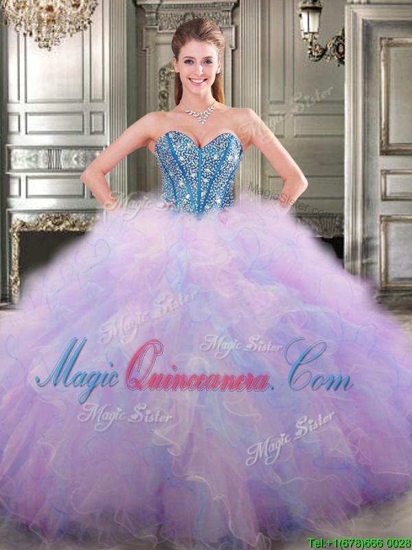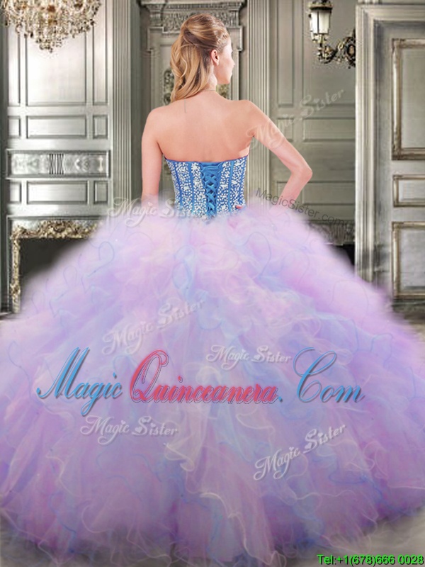 New Arrival Three Piece Multi-color Tulle Lace Up Sweetheart Sleeveless Floor Length Quinceanera Gowns Beading and Ruffles