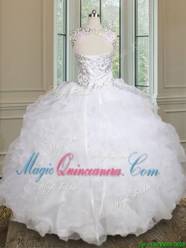 New Arrival White Sweet 16 Dress Military Ball and Sweet 16 and Quinceanera and For with Beading and Ruffles Scoop Sleeveless Lace Up