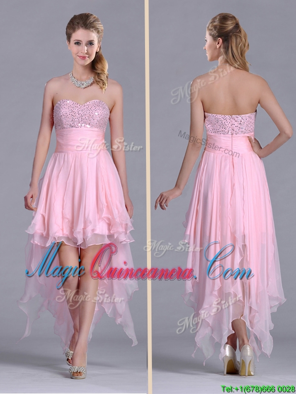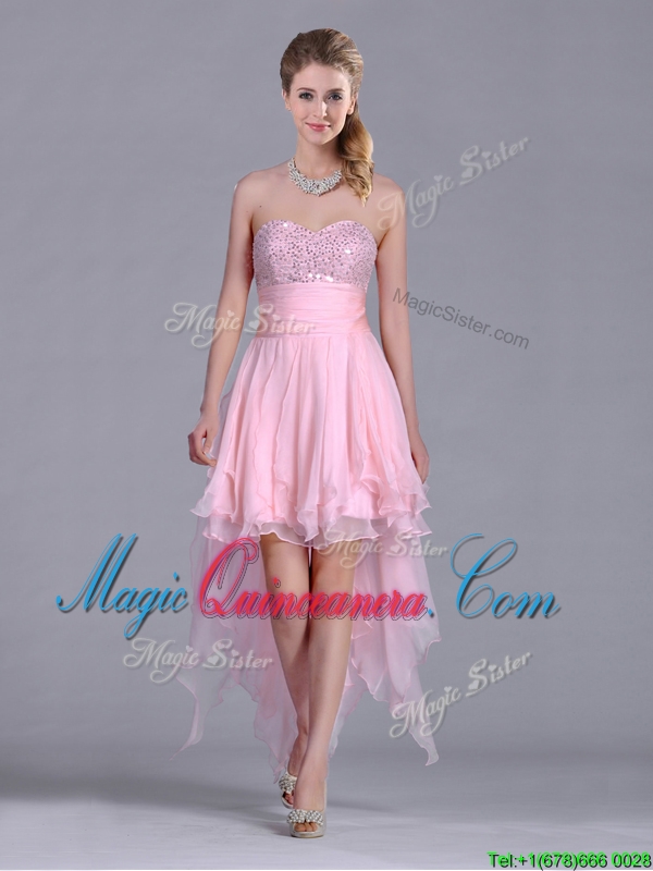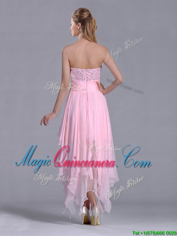 New Arrivals Beaded Bust High Low Chiffon Dama Dress in Baby Pink