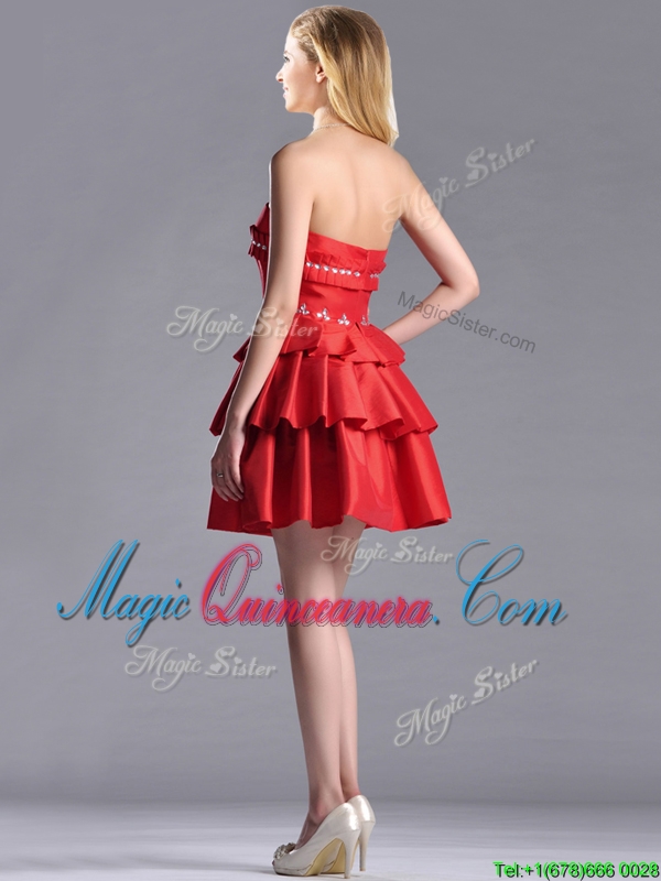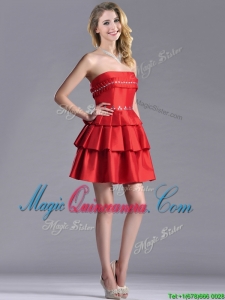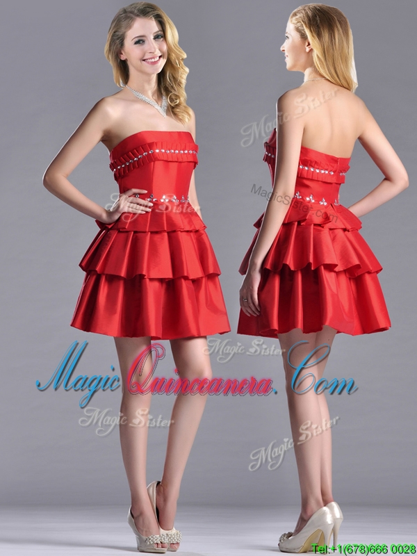 New Arrivals Red Strapless Dama Dress with Ruffled Layers and Beading