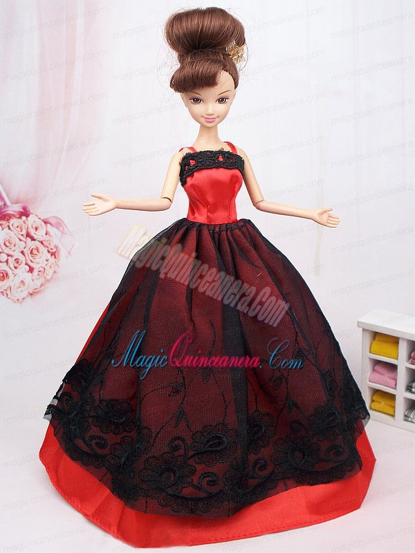 , New Beautiful Black and Red Handmade Party Clothes Fashion Dress For Noble Barbie