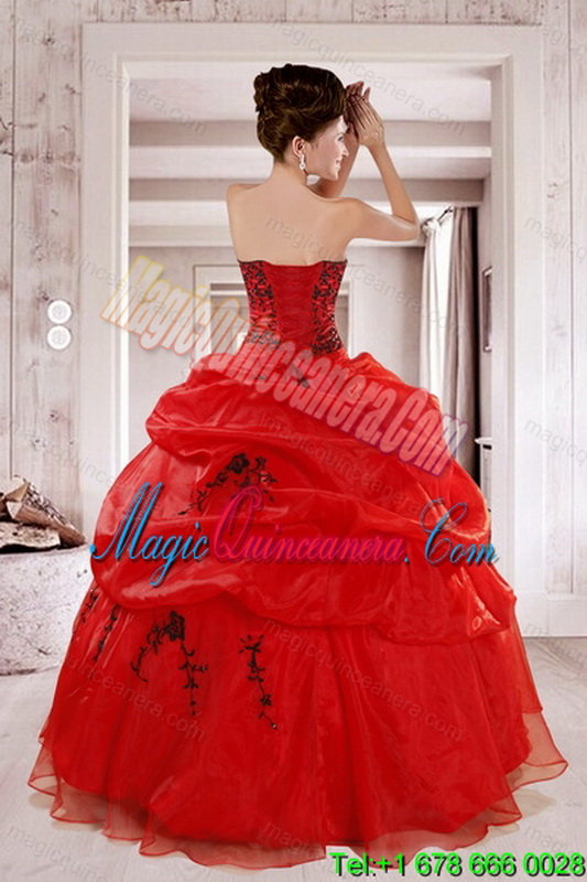 New style 2015 Perfect Red Quinceanera Dresses with Appliques and Pick Ups