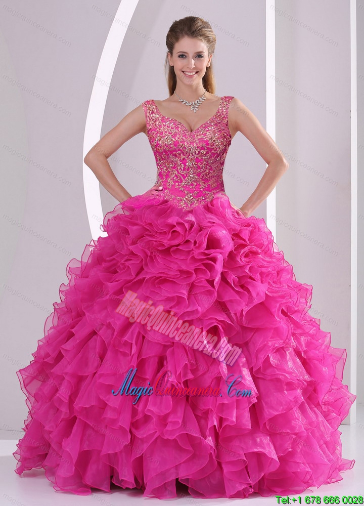 , New Style and Detachable Hot Pink Quinceanera Dress Skirts with Beading and Ruffles for 2015