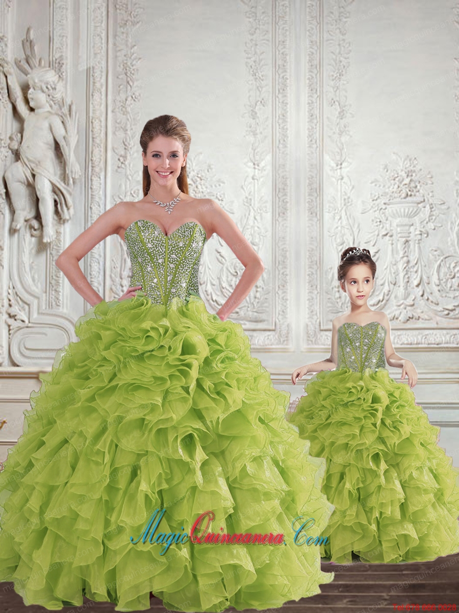 New Style Beading and Ruffles Princesita Dress in Yellow Green for 2015