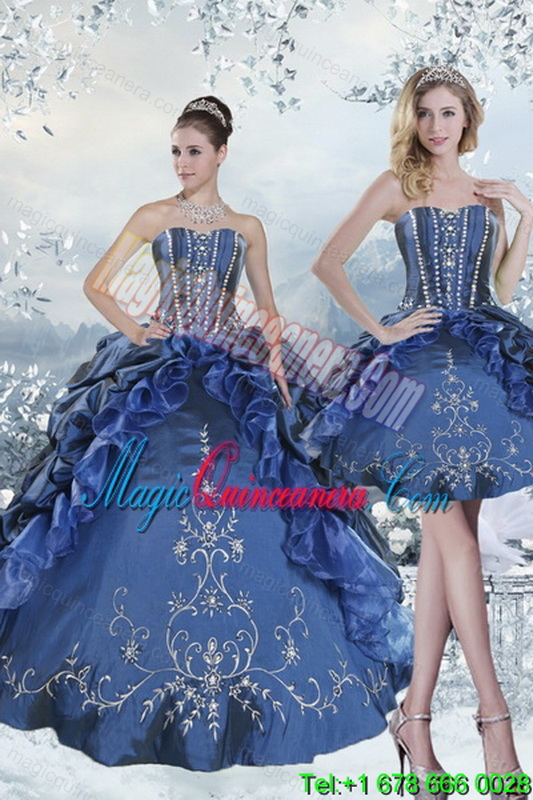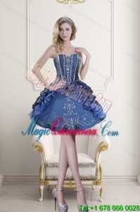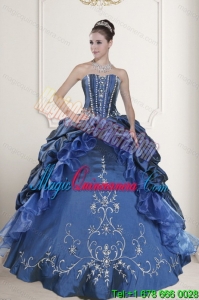 New style Custom Made Embroidery and Beading Blue Quince Dresses for 2015