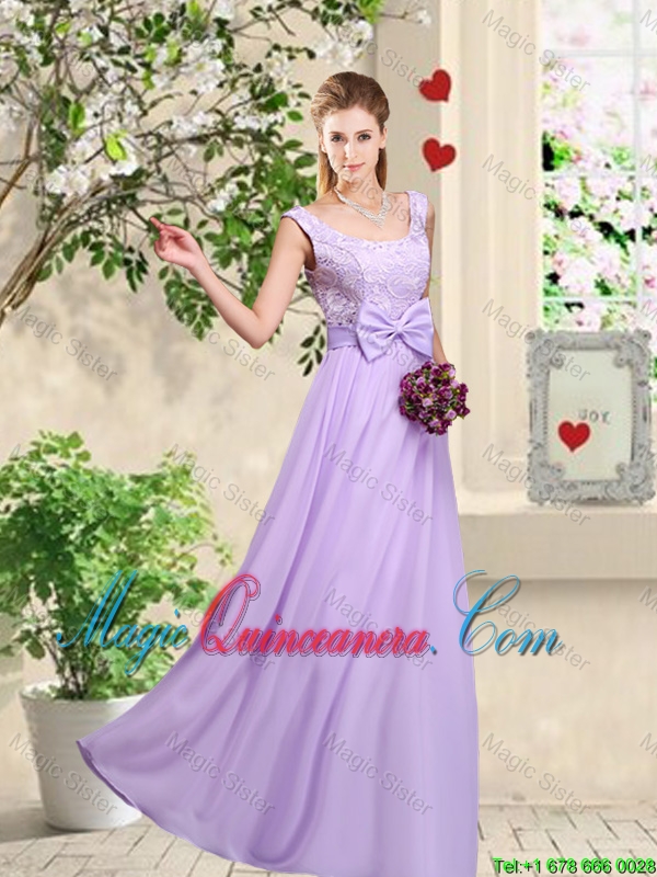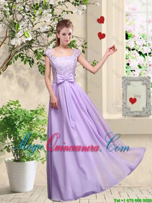 popular dama dresses for fomral quinces party, New Style Laced and Bowknot Dama Dresses with Square