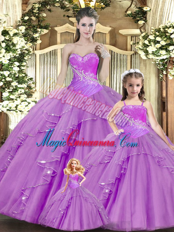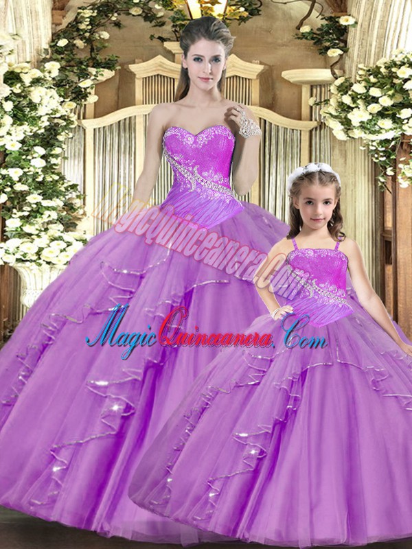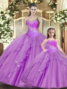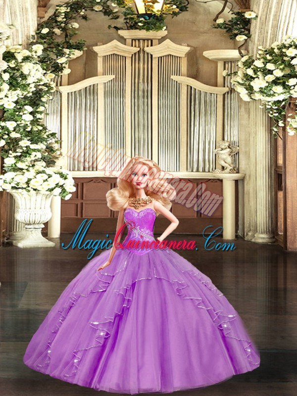 New Style Lilac Sleeveless Lace Lace Up Quinceanera Gowns for Military Ball and Sweet 16 and Quinceanera
