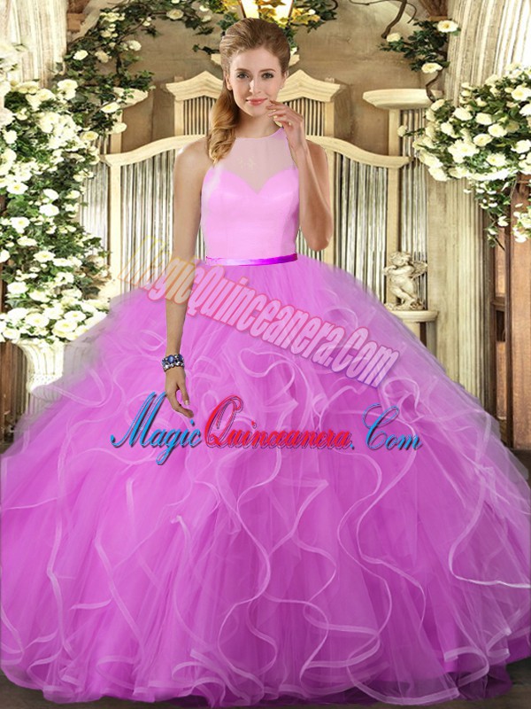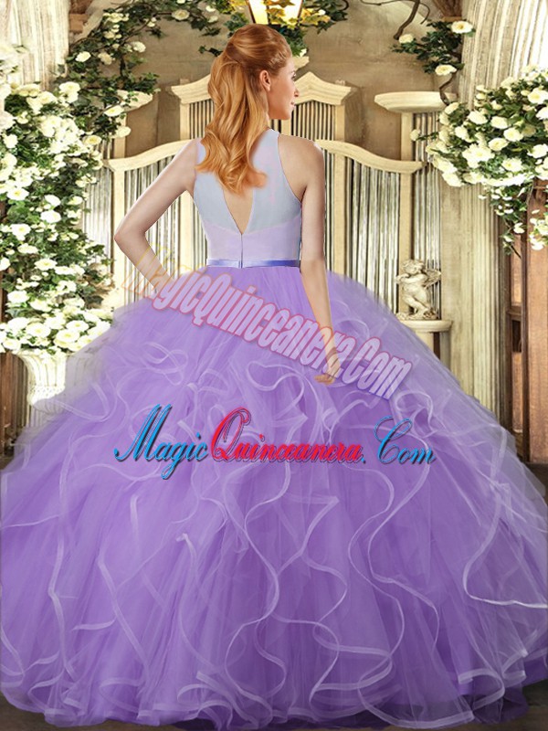 New Style Lilac Tulle Backless Sweet 16 Dress Sleeveless Floor Length Ruffles