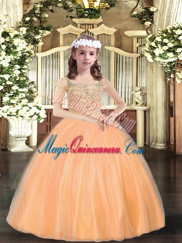 New Style Orange Straps Neckline Beading Kids Pageant Dress Sleeveless Lace Up