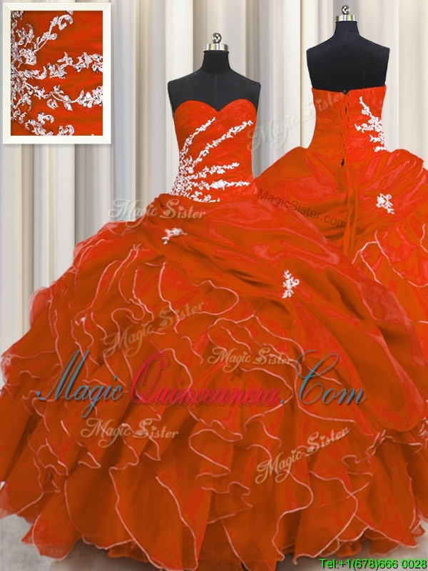 New Style Red Ball Gowns Beading and Appliques and Ruffles Sweet 16 Quinceanera Dress Lace Up Organza Sleeveless Floor Length