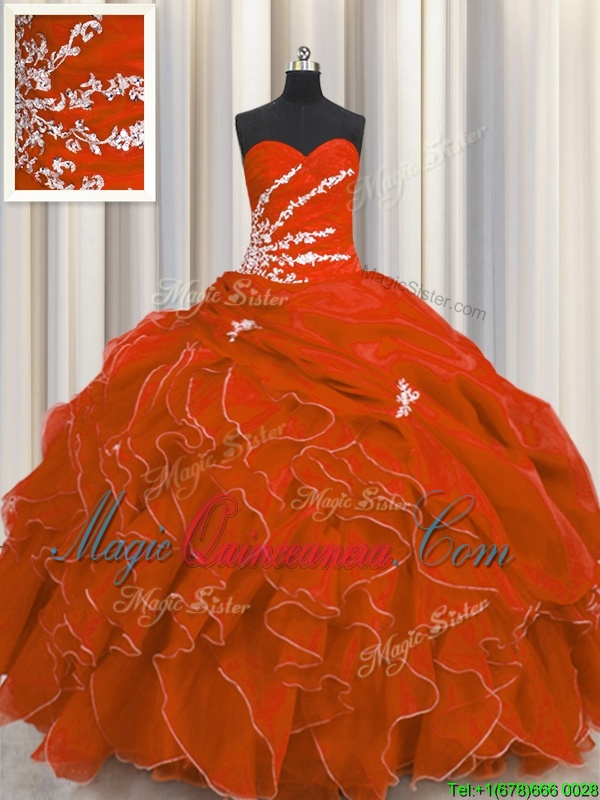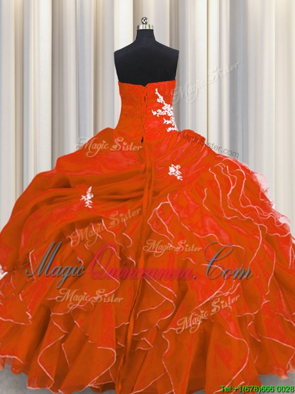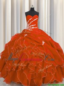 Visible Boning Organza Sleeveless Floor Length Quince Ball Gowns and Beading and Ruffles