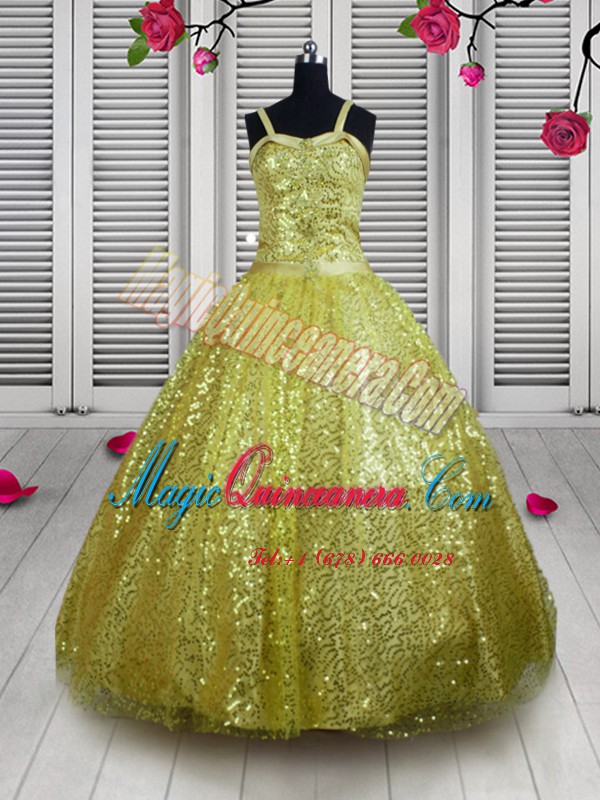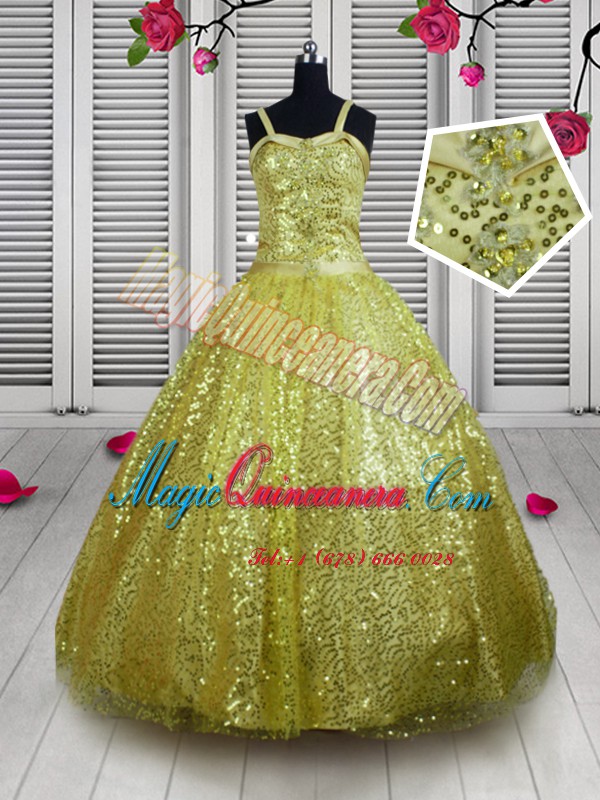 New Style Sequins Gold Sleeveless Sequined Lace Up Custom Made Pageant Dress for Party and Wedding Party