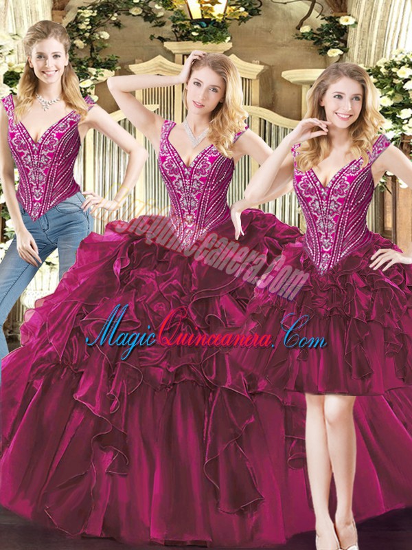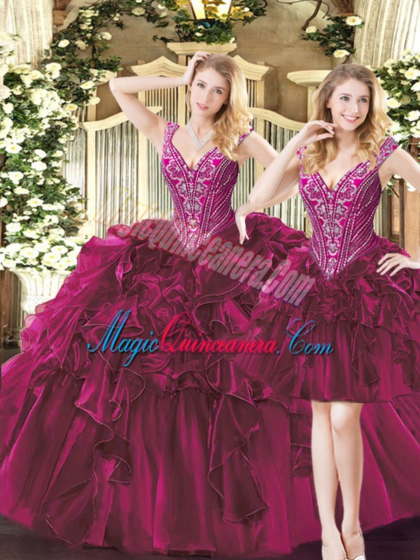 , New Style Sleeveless Lace Up Floor Length Beading and Ruffles Quinceanera Gown