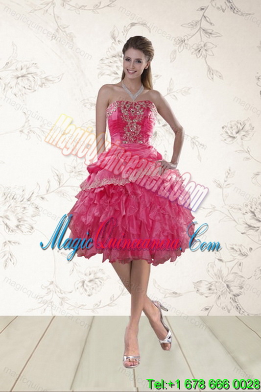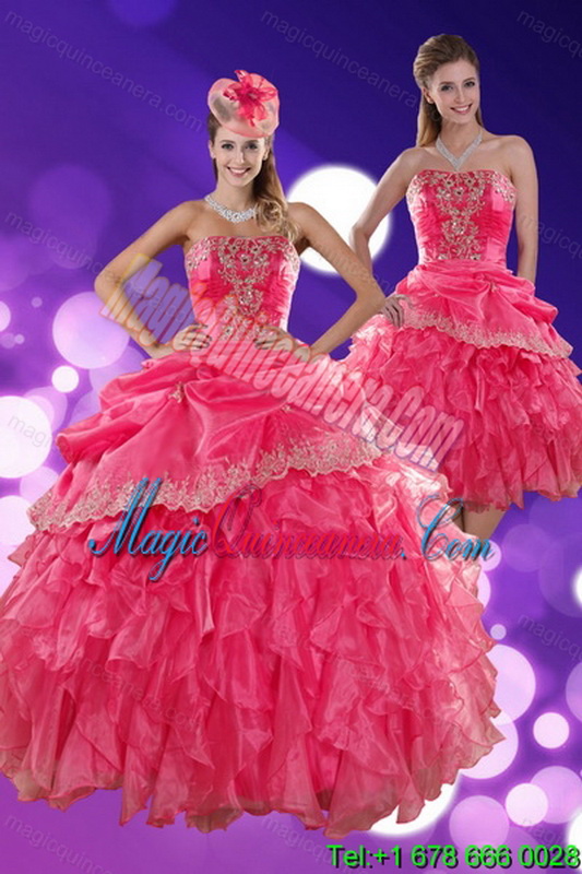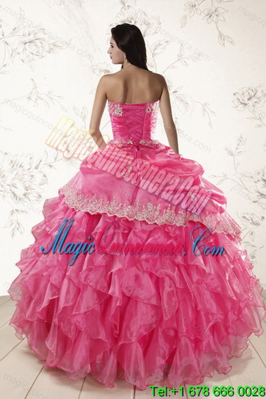 New Style Strapless Quince Dresses with Ruffles and Appliques