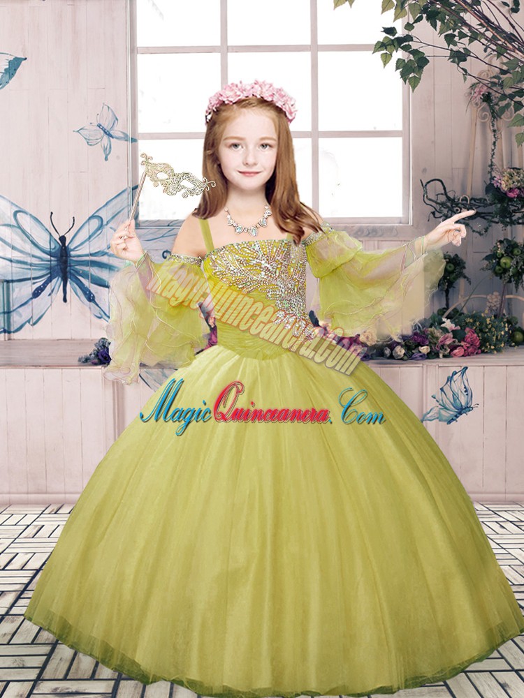 , New Style Straps Sleeveless Tulle Little Girl Pageant Gowns Beading Lace Up