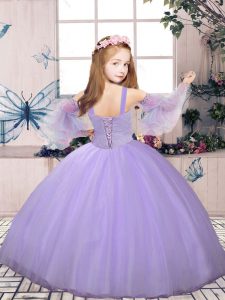 New Style Straps Sleeveless Tulle Little Girl Pageant Gowns Beading Lace Up