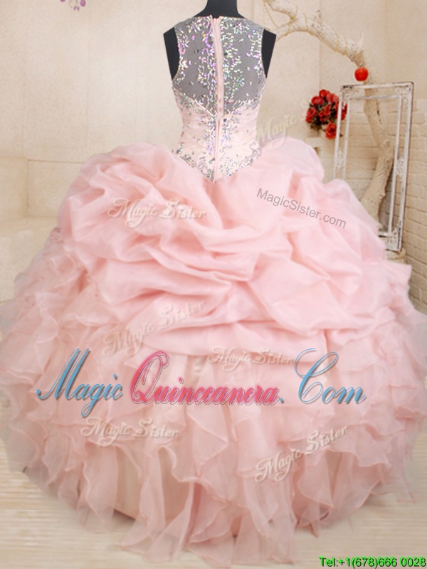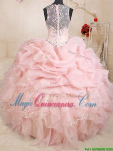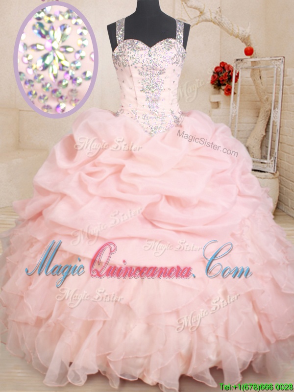 Nice Pick Ups Ball Gowns Sweet 16 Quinceanera Dress Baby Pink Straps Organza Sleeveless Floor Length Zipper