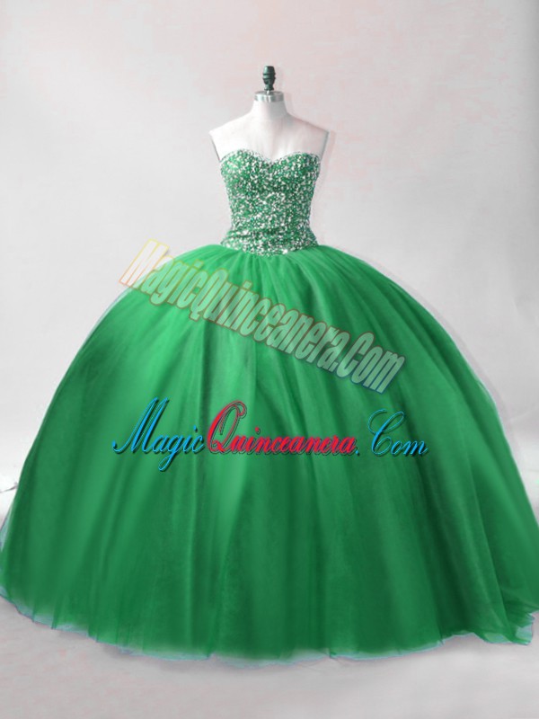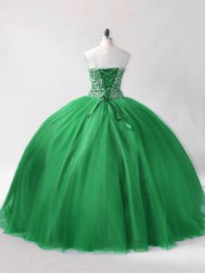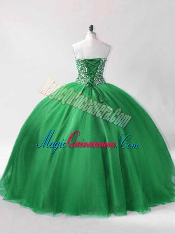 Nice Sleeveless Floor Length Beading Lace Up Sweet 16 Quinceanera Dress with Dark Green