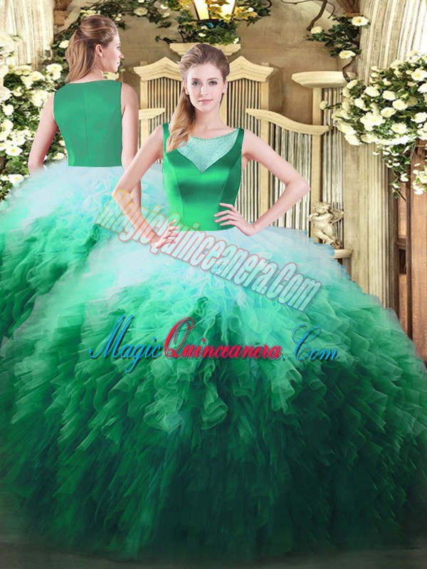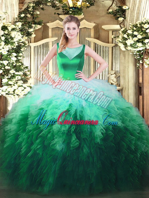 , Nice Sleeveless Side Zipper Floor Length Beading and Ruffles Quince Ball Gowns