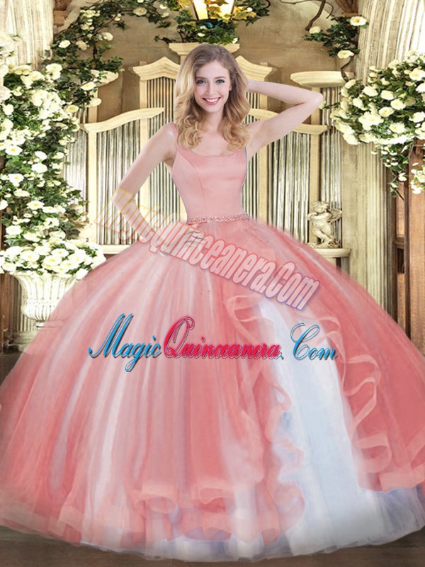 , Nice Sleeveless Zipper Floor Length Beading Vestidos de Quinceanera
