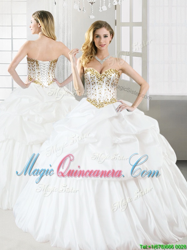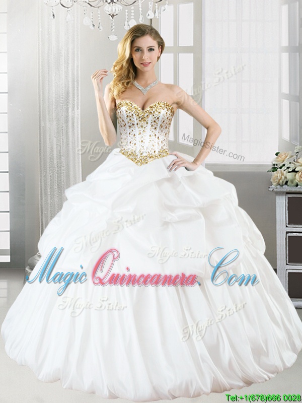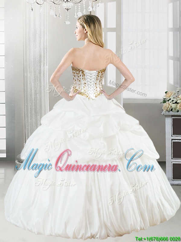 Noble Beading and Pick Ups Vestidos de Quinceanera White Lace Up Sleeveless Floor Length - Magic Quinceanera