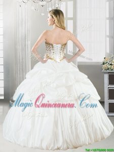 Noble Beading and Pick Ups Vestidos de Quinceanera White Lace Up Sleeveless Floor Length