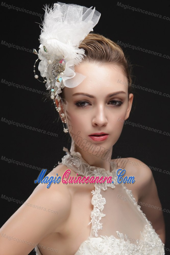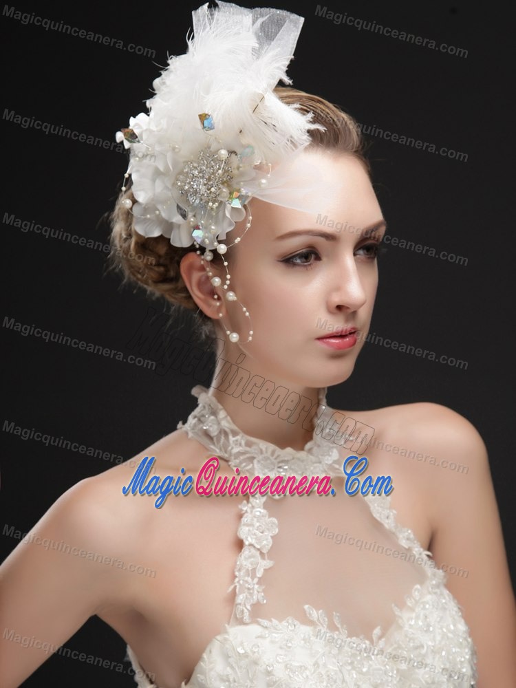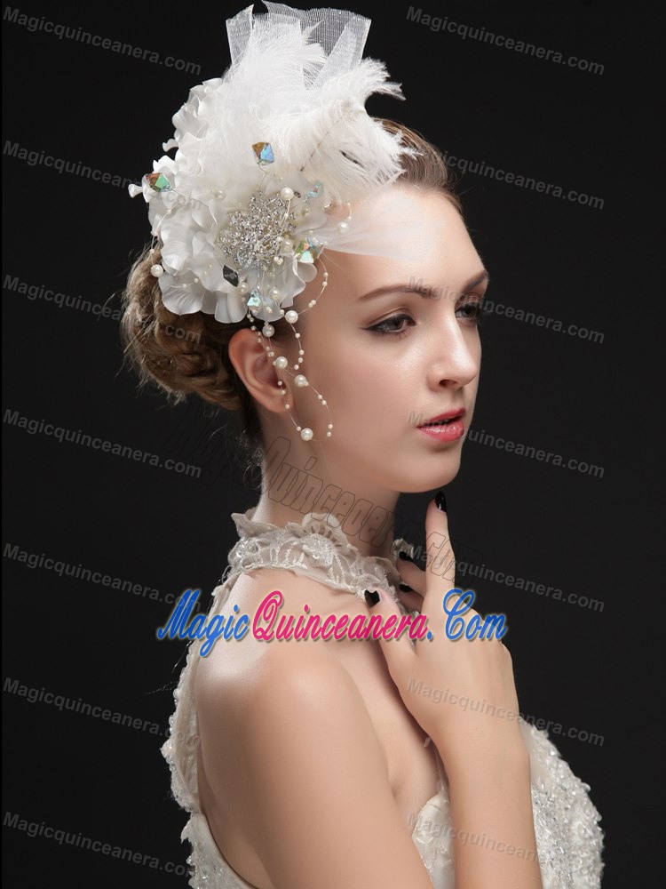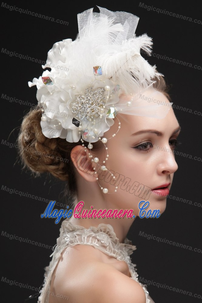 Noble Feather Imitation Pearls Fascinators With Colorful Rhinestones