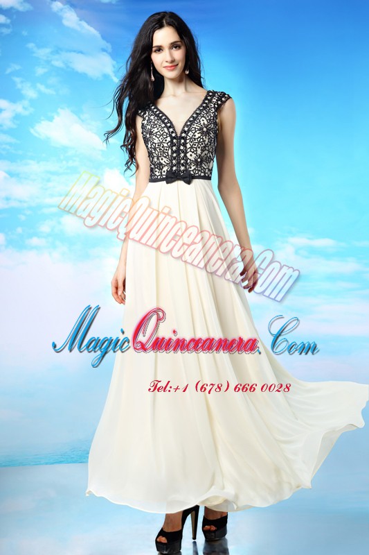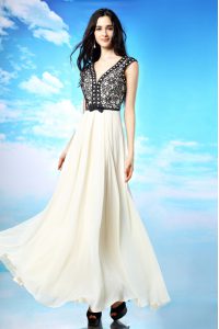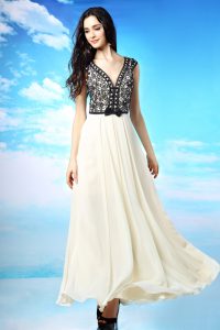 Luxury Scoop Sleeveless Side Zipper Ankle Length Beading and Ruching