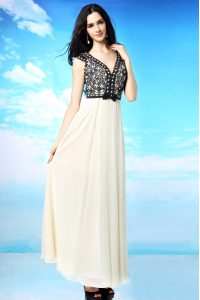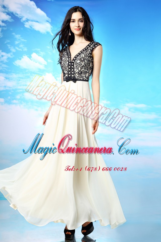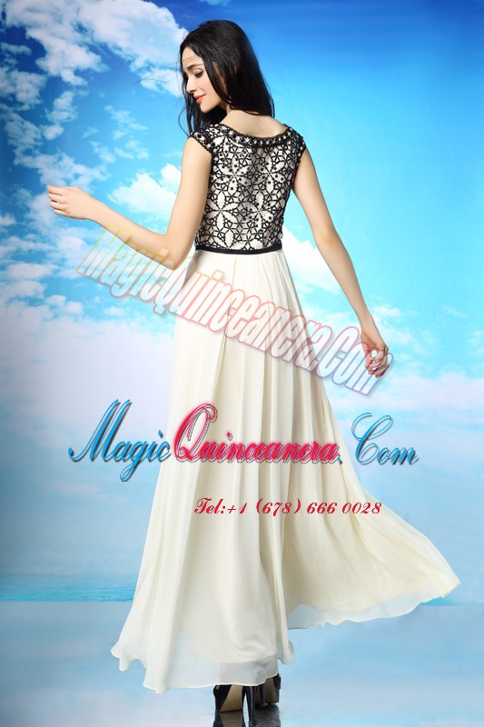 Noble White And Black Mother Of The Bride Dress Prom and Party and For with Appliques and Bowknot V-neck Cap Sleeves Side Zipper