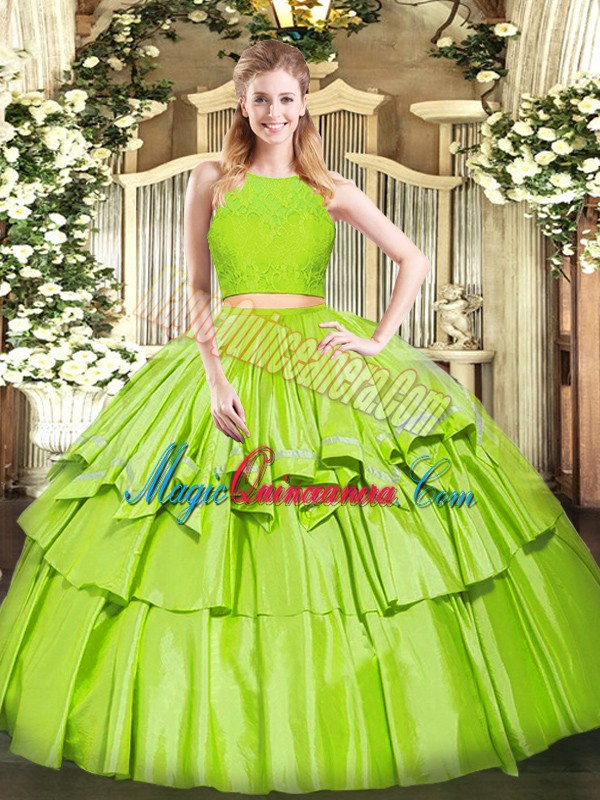 Noble Yellow Green Zipper Scoop Ruffled Layers Vestidos de Quinceanera Tulle Sleeveless