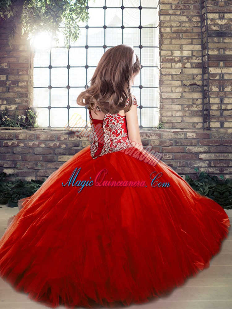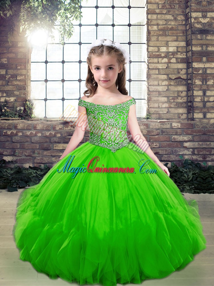 Off The Shoulder Sleeveless Lace Up Little Girls Pageant Dress Wholesale Tulle
