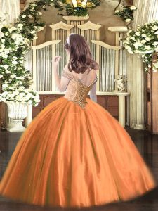 Off The Shoulder Sleeveless Pageant Dress Toddler Floor Length Beading Rust Red Tulle