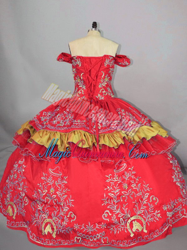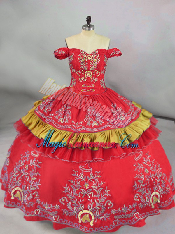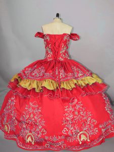 Off The Shoulder Sleeveless Satin Sweet 16 Quinceanera Dress Embroidery Lace Up