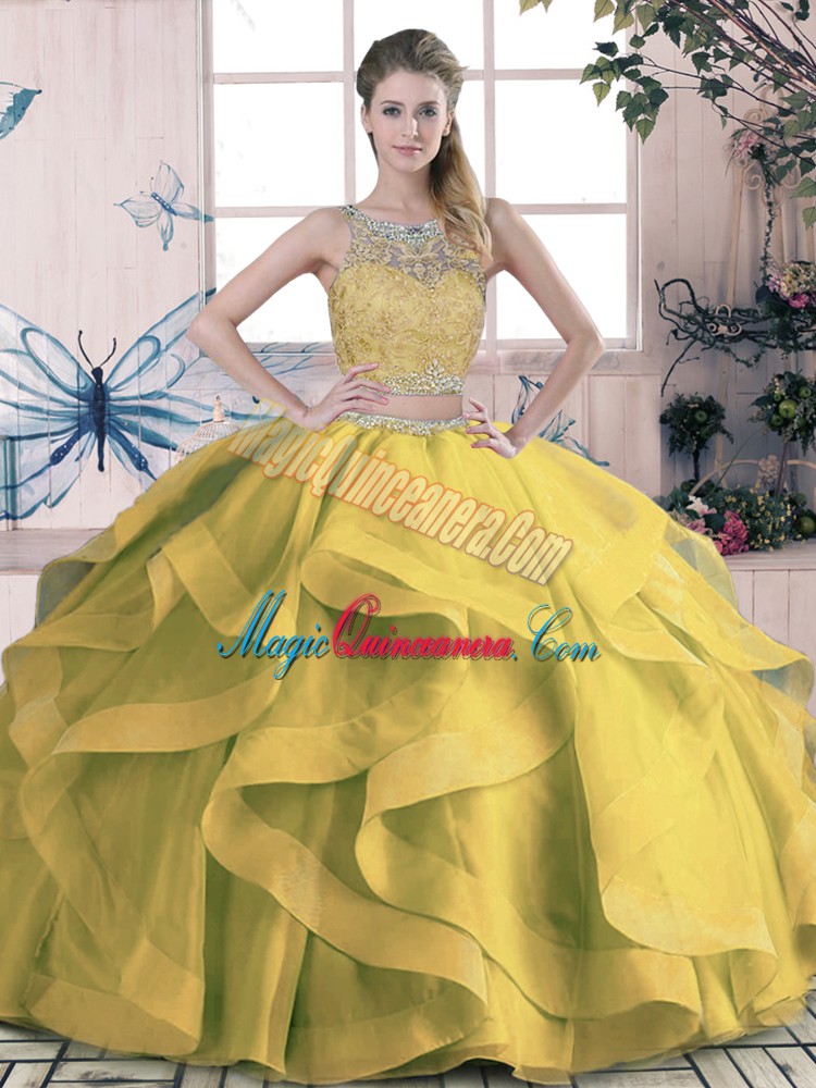 Olive Green Lace Up Quinceanera Dresses Beading and Ruffles Sleeveless Floor Length