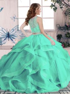 , Olive Green Lace Up Quinceanera Dresses Beading and Ruffles Sleeveless Floor Length