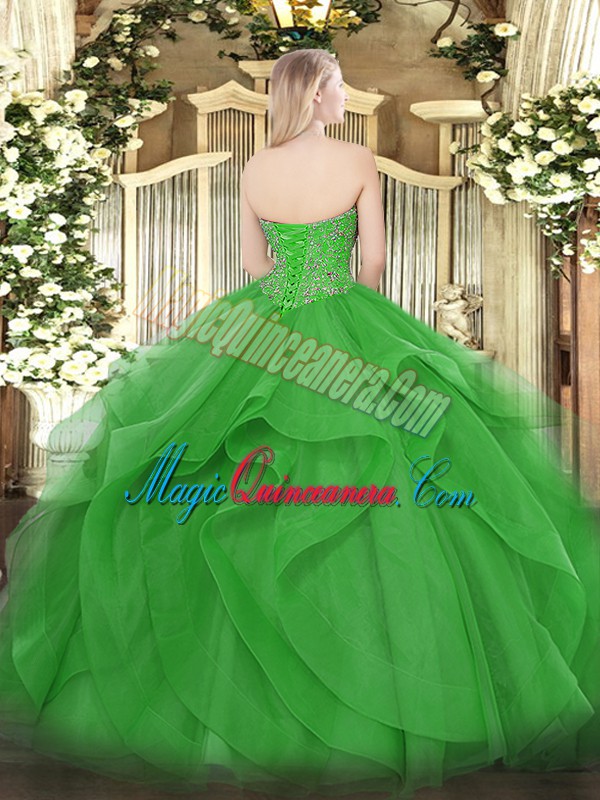 , Olive Green Lace Up Sweetheart Beading and Ruffles Sweet 16 Dress Tulle Sleeveless