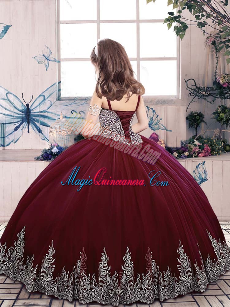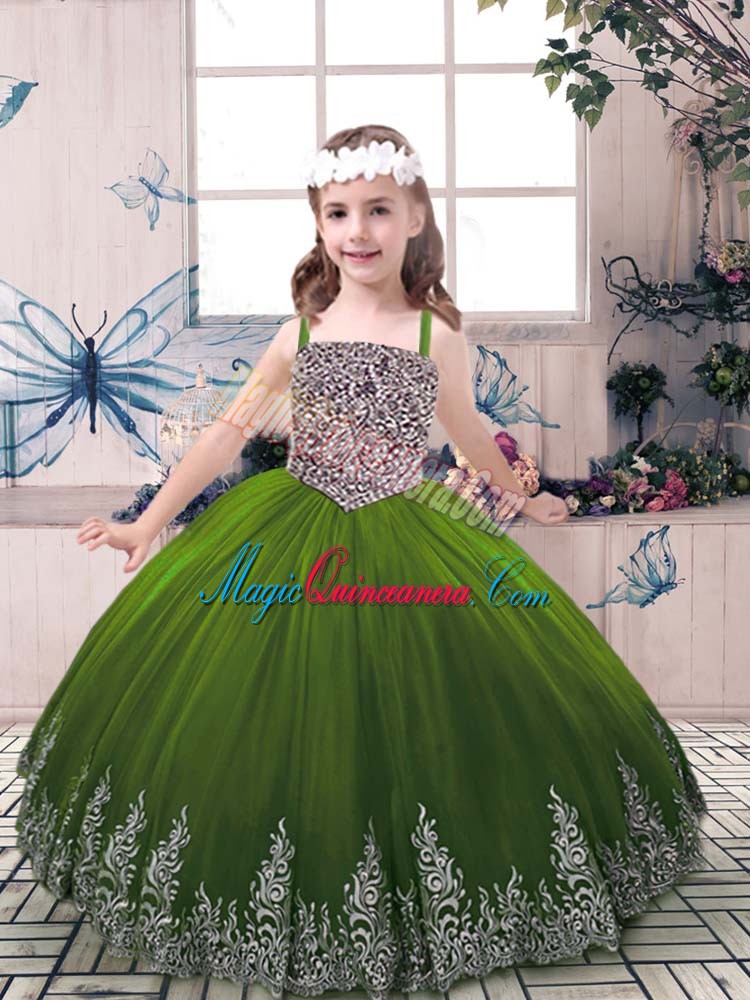 Olive Green Pageant Gowns For Girls Party and Wedding Party with Beading and Embroidery Straps Sleeveless Lace Up