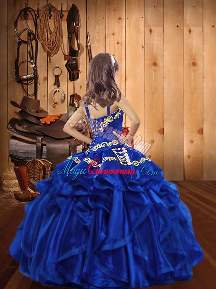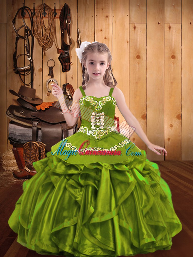Olive Green Straps Neckline Embroidery and Ruffles Evening Gowns Sleeveless Lace Up