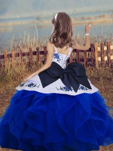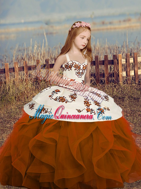 On Sale Floor Length Rust Red Girls Pageant Dresses Straps Sleeveless Lace Up