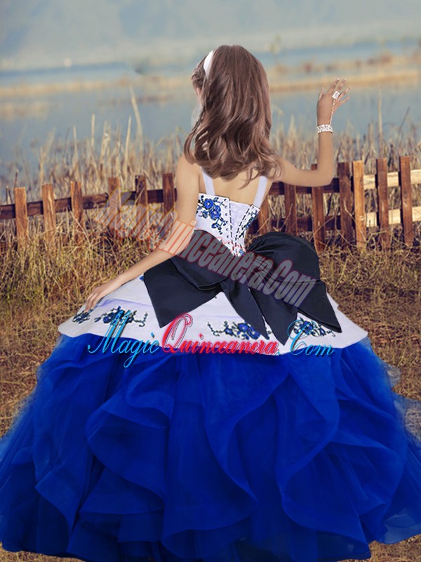 , On Sale Floor Length Rust Red Girls Pageant Dresses Straps Sleeveless Lace Up