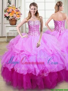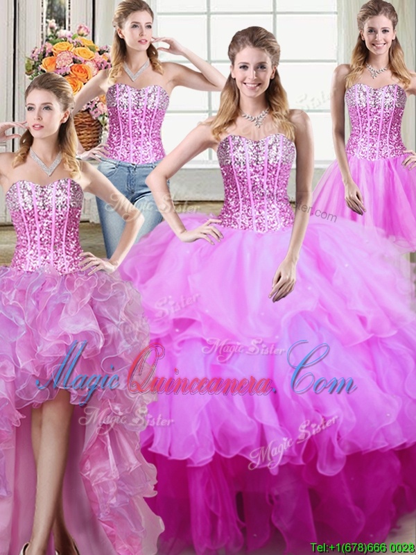 On Sale Four Piece Multi-color Organza Lace Up Sweet 16 Dress Sleeveless Floor Length Ruffles and Sequins